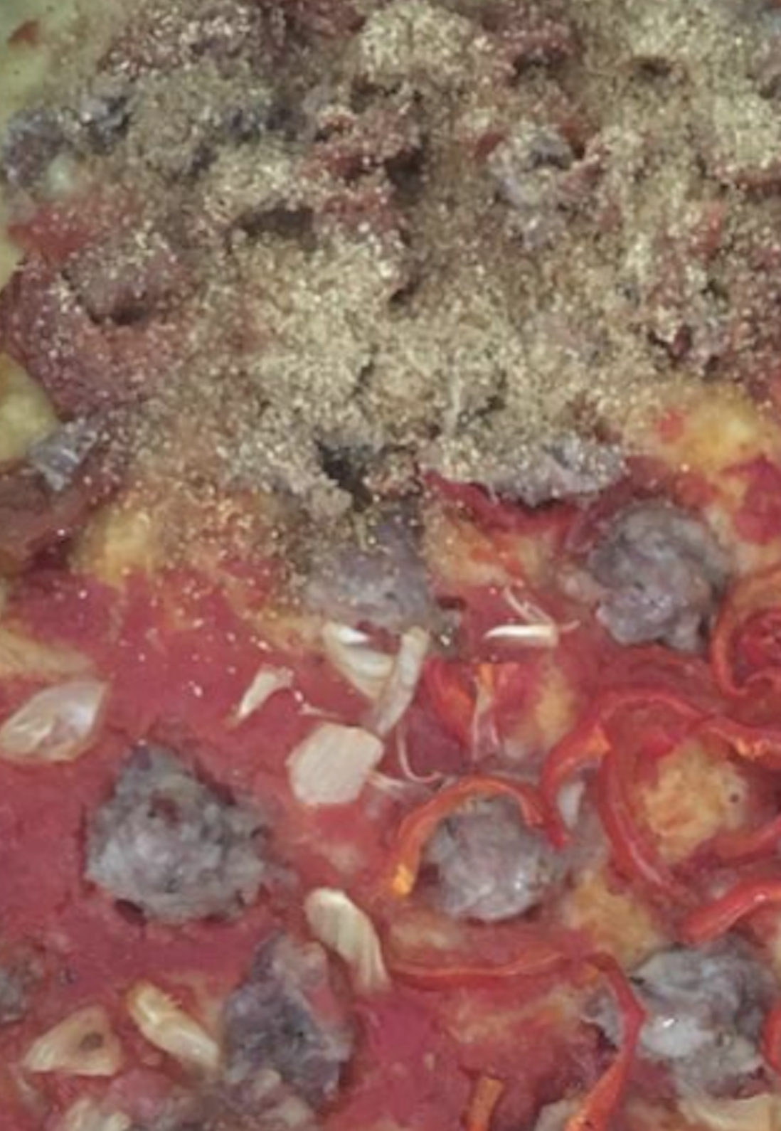 Infornare senza alici, pomodori secchi e pangrattato tostato che verrà aggiunto dopo a crudo.